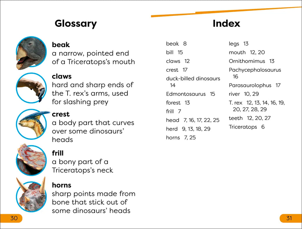 - Developing subject vocabulary on topics such as dinosaurs, with a focus on the Triceratops and the Tyrannosaurus rex.