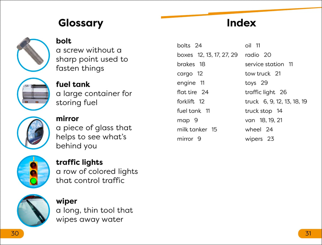 - Developing subject vocabulary on topics such as delivery drivers, trucks, and people’s jobs.