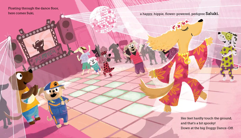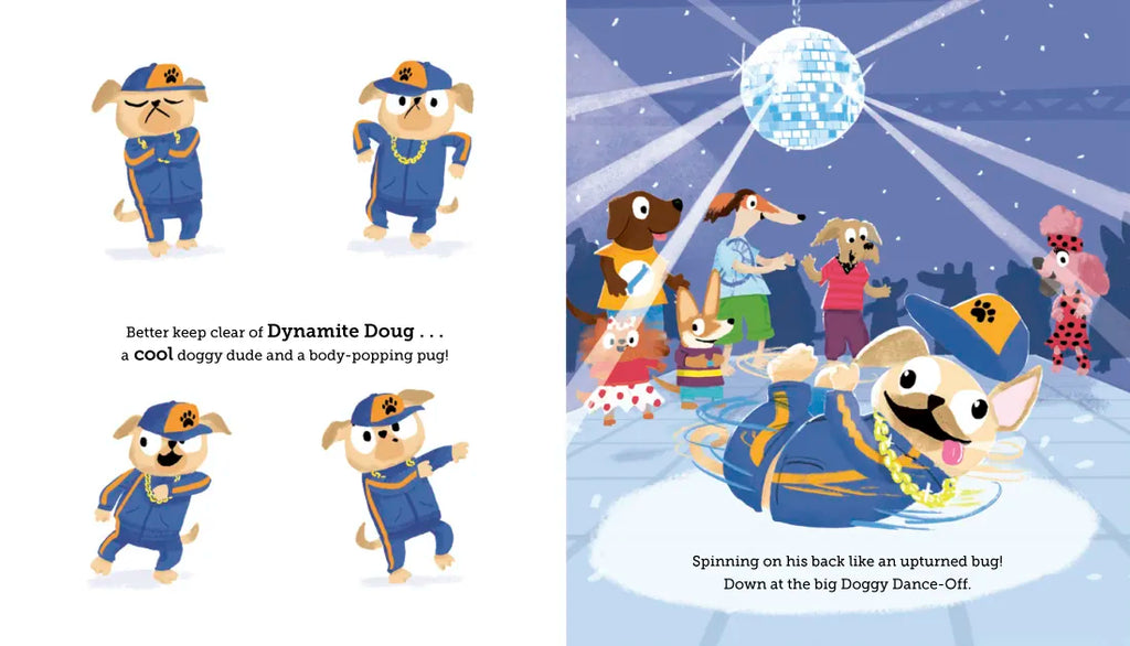 At the Doggie Dance-off, the coolest dogs around gather to show off their best dance moves, eat snacks, and listen to DJ Patch, who keeps the music going. Eva the golden retriever struts across the dance floor; Doug the pug likes to spin on his back on the floor; and Duke Doggy Doo bounces around like a kangaroo! Then one day, a masked stranger comes in and dances better than anyone has ever seen. Who is she?