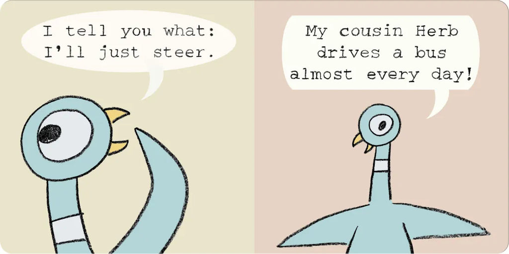 When the Bus Driver takes a break from his route, a very unlikely volunteer springs up to take his place: a pigeon! But you’ve never met a pigeon like this one before. As the Pigeon pleads, wheedles, and begs his way through the book, readers answer back and decide his fate.
