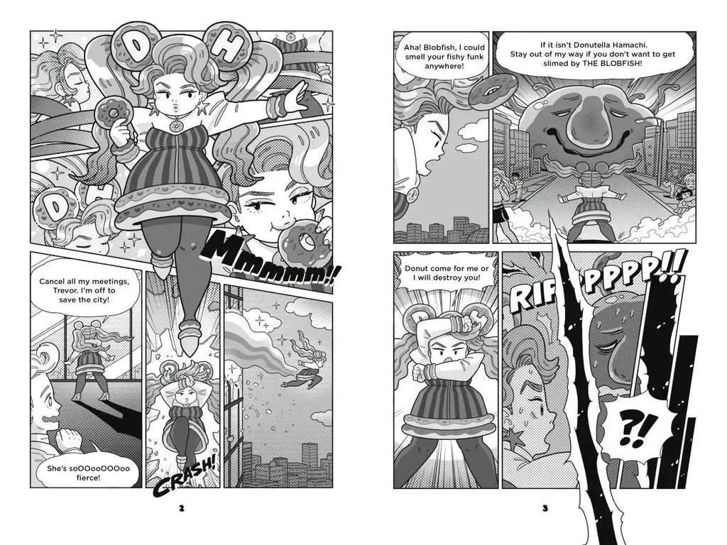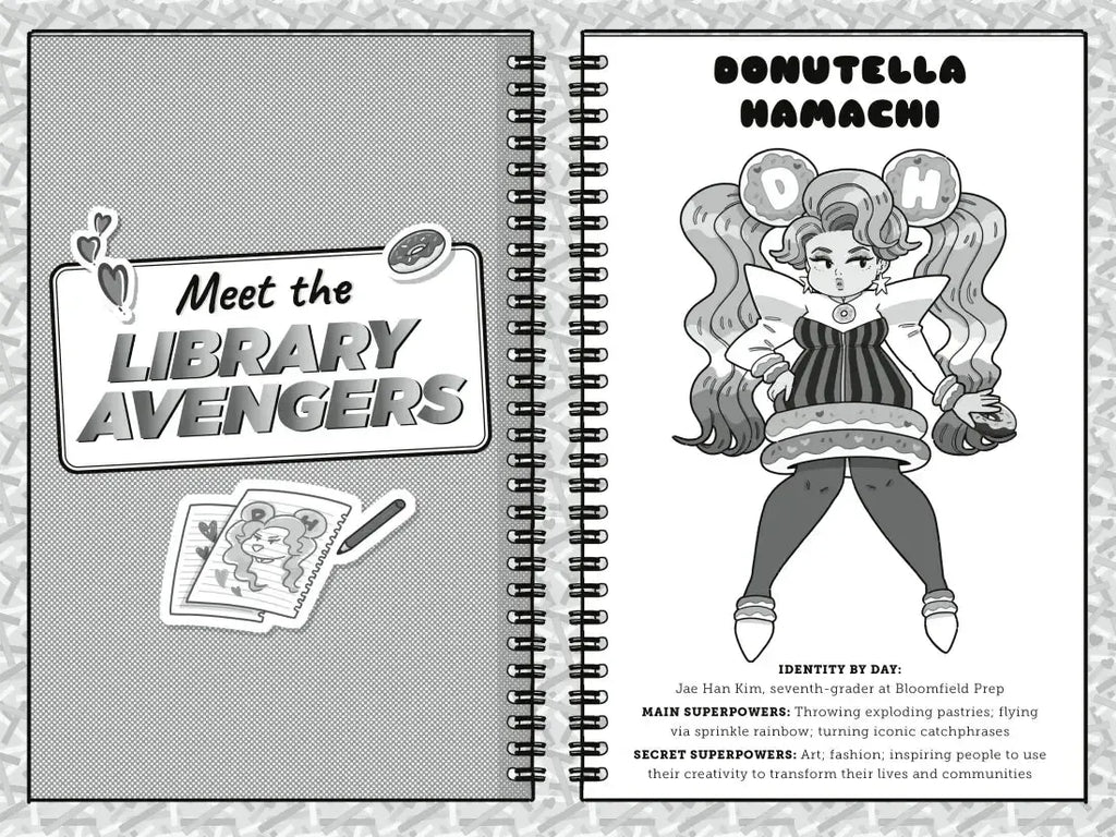 For twelve-year-old Korean immigrant Jae Han, the library is more than a place to check out books. It’s a safe space to work on his comic book featuring drag superhero Donutella Hamachi, play video games to improve his English, and befriend other outcast kids sheltering among the stacks. When the mayor announces plans to demolish the building and pave a mall parking lot, Jae Han pleads with his friend the librarian to intervene. But even if the mayor doesn’t shutter the library, Ms. Henny reveals, a funding deficit will. Called to action, Jae Han rallies his ragtag group of friends to halt the destruction of their haven. Can they—with help from the sparkling Donutella Hamachi—unite long enough to defeat the slime-shooting blobfish enveloping screaming citizens in goo (i.e., ace a fundraising campaign)? Filled with diabolical plots and empowerment aplenty, this lively foray into the heart of a town’s darkness, sprinkled through with hilarious graphic panels, will delight superhero fans, comic book creators, and anyone who has felt outside the mainstream—and perfectly at home in a library.