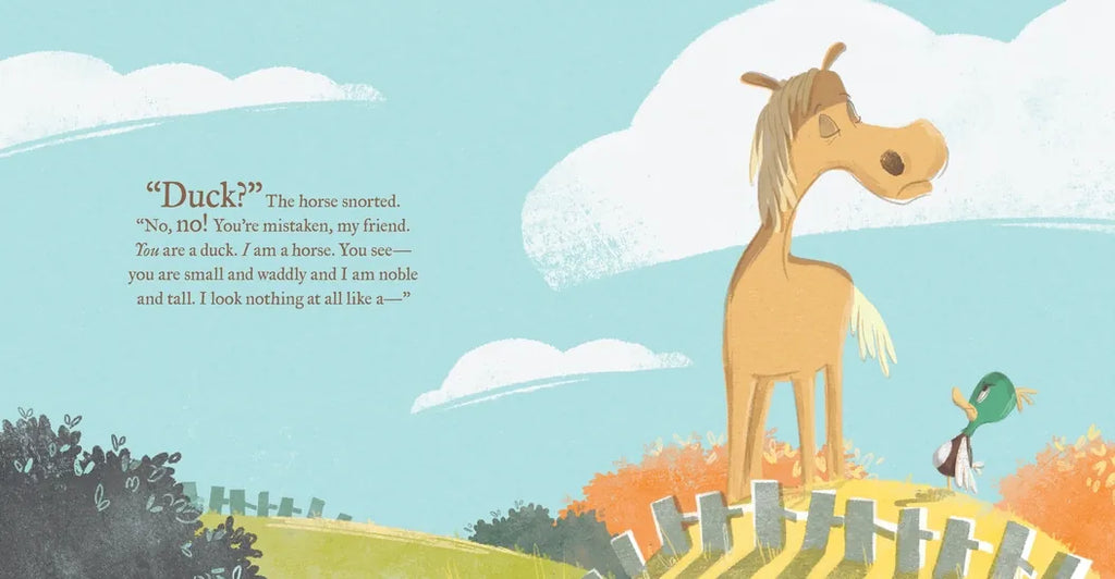 When Duck runs around the farm shouting “DUCK!” to the other animals, they grow exasperated as they haughtily explain to Duck which animal is which. Unfortunately, something is falling from the sky. But perhaps “DUCK!” isn’t the best warning. Perhaps what Duck should have said is . . . “RUN!”
