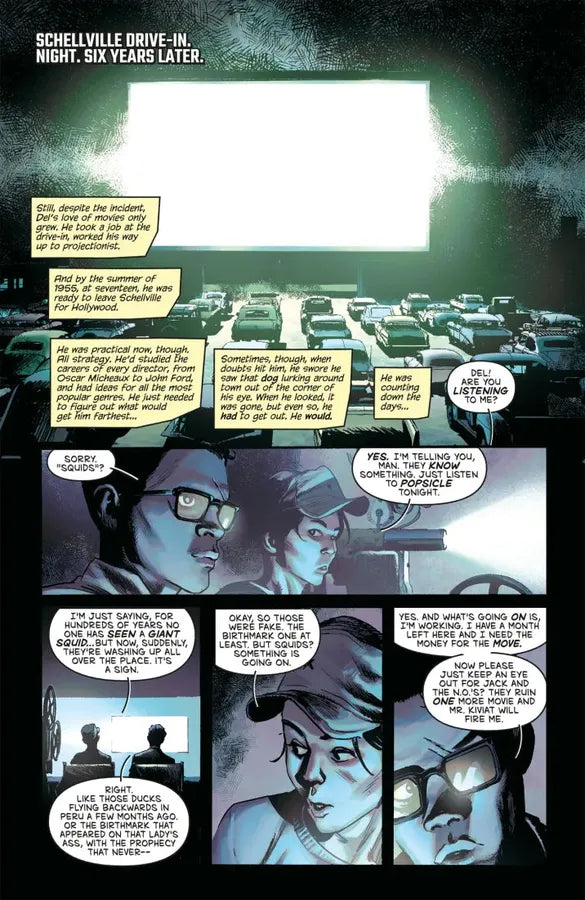 The year is 1955, and teenager Del Reeves dreams of ditching town life for a life in movies beyond projecting them at the local drive-in. But when Cold War nightmares become a reality, Del discovers that the film genres he’d grown up watching are more real than he could have ever imagined. When a sudden nuclear exchange obliterates the U.S., only the children who hid under their school desks are spared. These teens now find themselves the lone survivors in a strange and wild new ’50’s America.