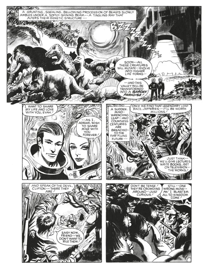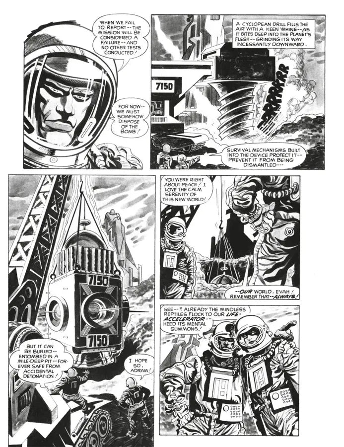 Prepare yourself for an extended series of forbidden experiments by comics masterminds Esteban Maroto, Doug Moench, Tom Sutton, Steve Skeates, Luis Dominguez, and more. By the way, who’s that strapped to the slab? Oh, it’s you! Don’t worry, the pain won't last forever—but it’ll feel like it!
