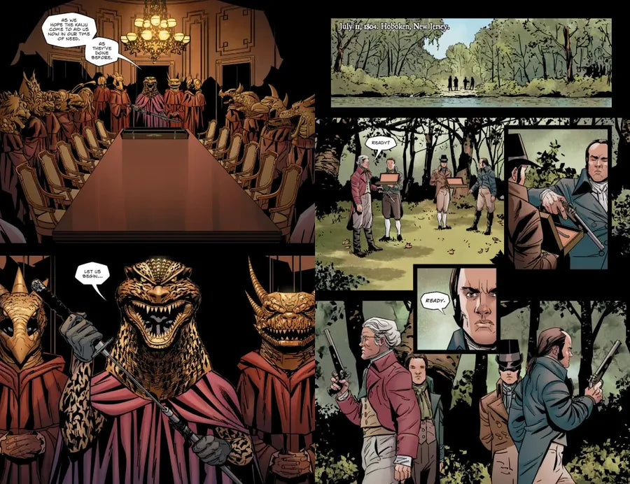 The sequel to 2024’s Eisner-nominated smash Godzilla: Here There Be Dragons. Frank Tieri and Inaki Miranda reunite in this historical miniseries that explores a shadowy society who control the secrets of the kaiju, from ancient Rome to Colonial America and beyond.