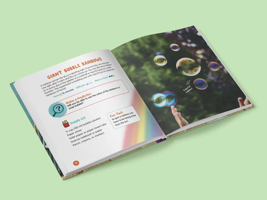 Discover the wonders of science in exciting experiments that kids can do at home with easy-to-find materials. Whether they're blowing bubbles to spot rainbows, rubbing balloons to make static electricity, or launching pom-pom balls to understand the laws of motion, young scientists will be engrossed by memorable, hands-on, science and fun!