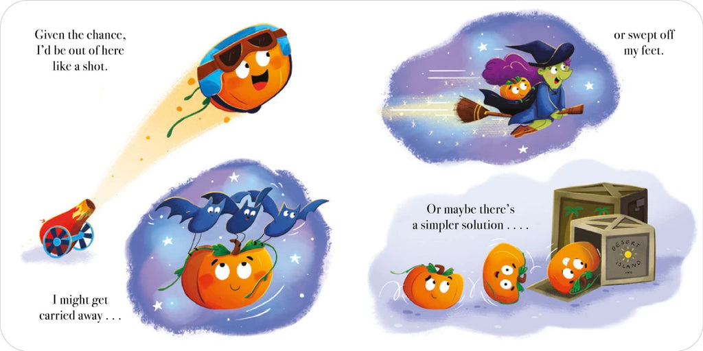 Grumpkin the grumpy pumpkin is determined to get out of the pumpkin patch and leave the annoying season of fall behind in this humorous board book for children ages 3-6.