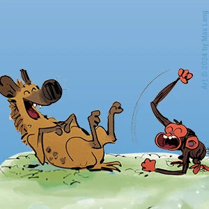 Instead, Jim Panzee spends time swinging with the monkeys, singing with the birds, and rolling around with the zebras. When his friends return home, Jim finds new animal friends so he can keep on playing. But by the end of the day, when Jim is dirty, itchy, and hungry, his best pal Norman patiently tells him “Too much of anything can be, well, too much.”