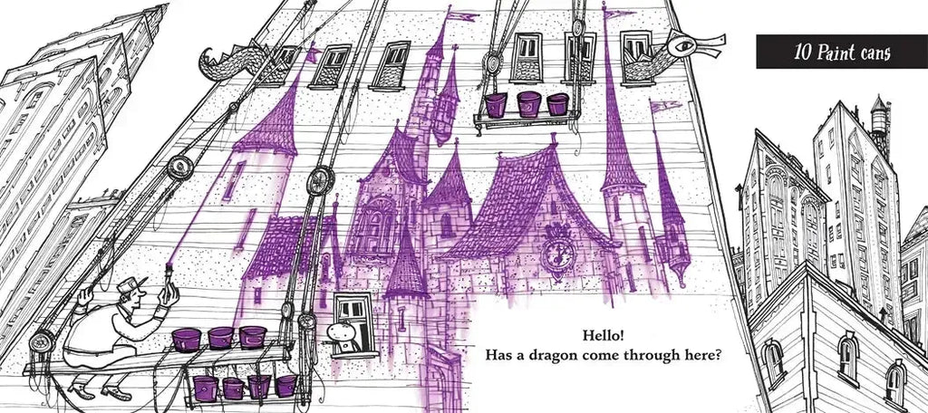Enter a fascinating, ornately drawn cityscape and help a boy find his dragon while counting objects from hot dogs to traffic lights.