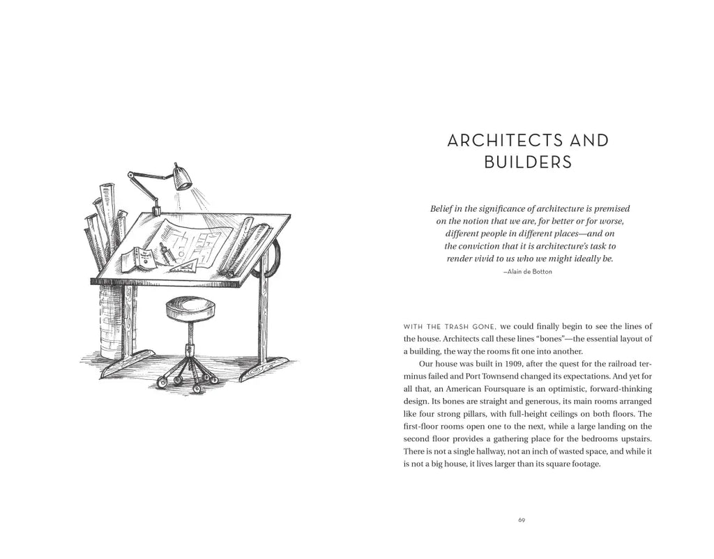 In this mesmerizing memoir-in-essays, Erica Bauermeister renovates a trash-filled house in eccentric Port Townsend, Washington, and in the process takes readers on a journey to discover the ways our spaces subliminally affect us. A personal, accessible, and literary exploration of the psychology of architecture, as well as a loving tribute to the connections we forge with the homes we care for and live in, this book is designed for anyone who’s ever fallen head over heels for a house. It is also a story of a marriage, of family, and of the kind of roots that settle deep into your heart. Discover what happens when a house has its own lessons to teach in this moving and insightful memoir that ultimately shows us how to make our own homes (and lives) better.