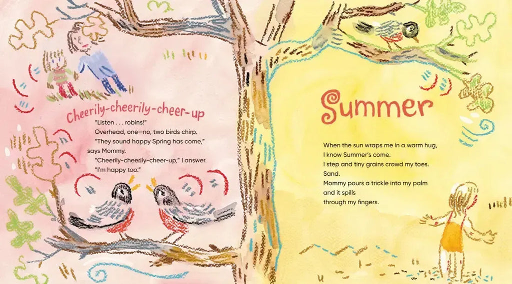 In this poetic story with art by a two-time Caldecott Medalist, join Neveah as she uses her senses of touch, taste, hearing, and smell to vividly describe the changing seasons and the unique delights they each have to offer.