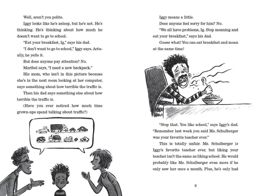 Have you ever heard those words? Sometimes it means "Things got better." That's not what it means in this book. In this book, Iggy gets an idea--a perfectly fine idea--and then, unfortunately, the principal shows up, and then, even more unfortunately, there's an incident with a basketball, and then, before you know it, Iggy's flying through the air.