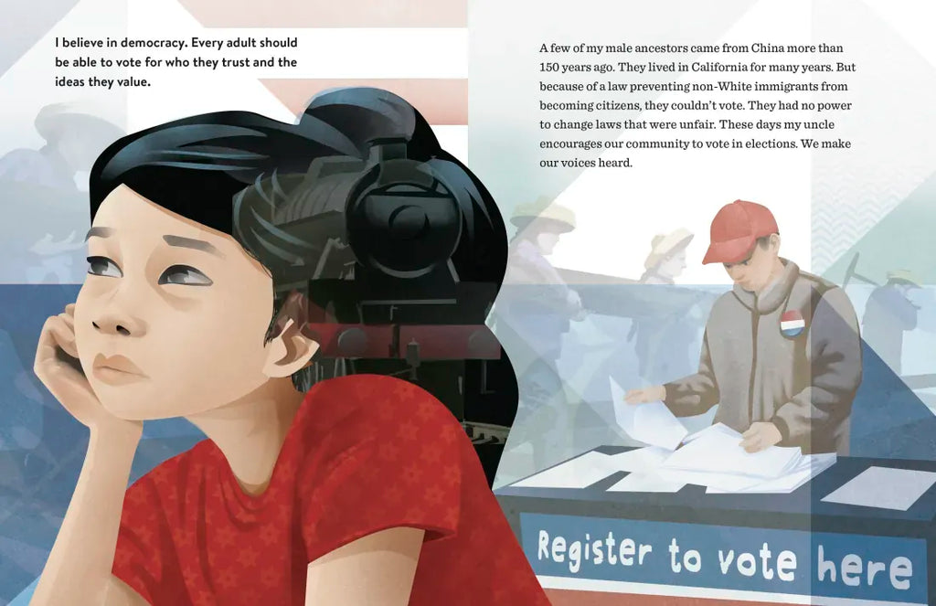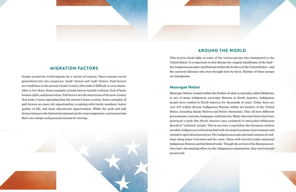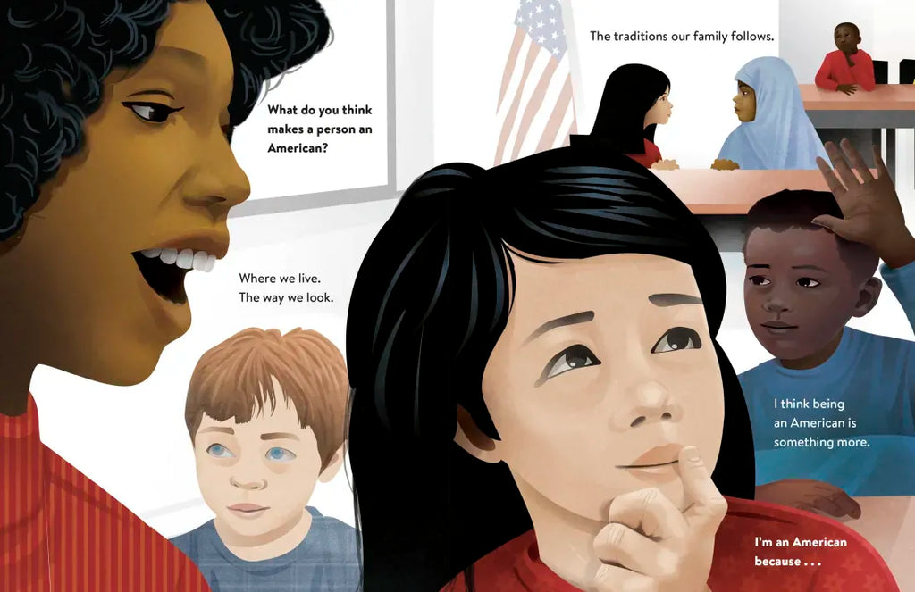 A classroom of children across many races, cultures, and origins explores the concept of Americanness as they each share bits of their family history and how their past has shaped their own personal American experience. Whether as new immigrants, or those whose family came to this country generations ago, or other scenarios, these children’s stories show some of the broad range of cultures and values that form the history and identity of our nation.