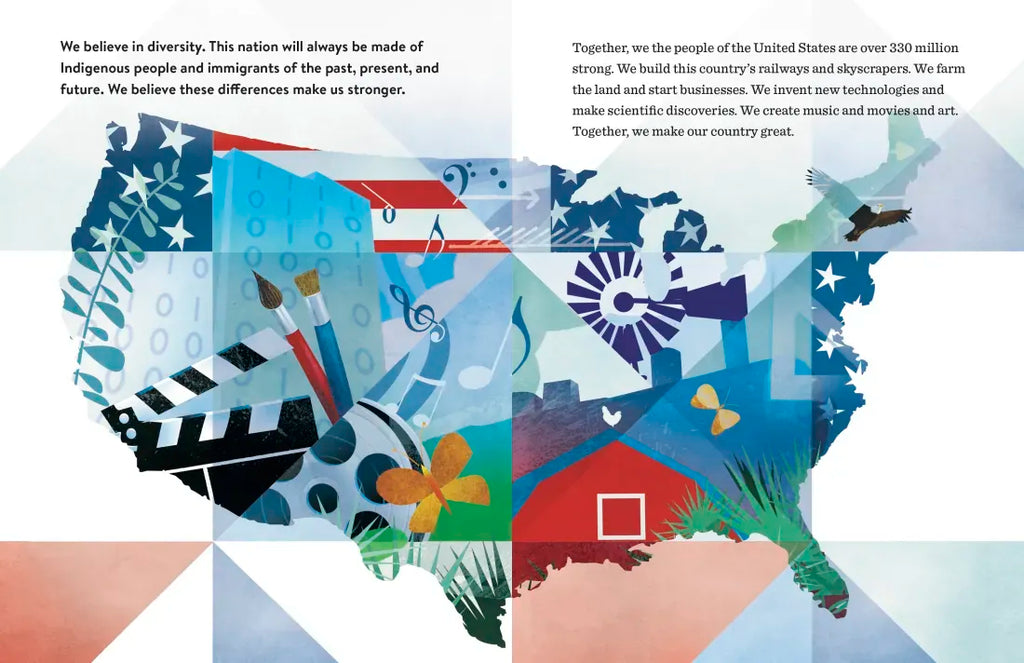A beautifully depicted, thought-provoking look at the vast expanse of cultures that exists in America, the values that bring us together as one people despite our differences, and the many ways we define what it means to be an American.