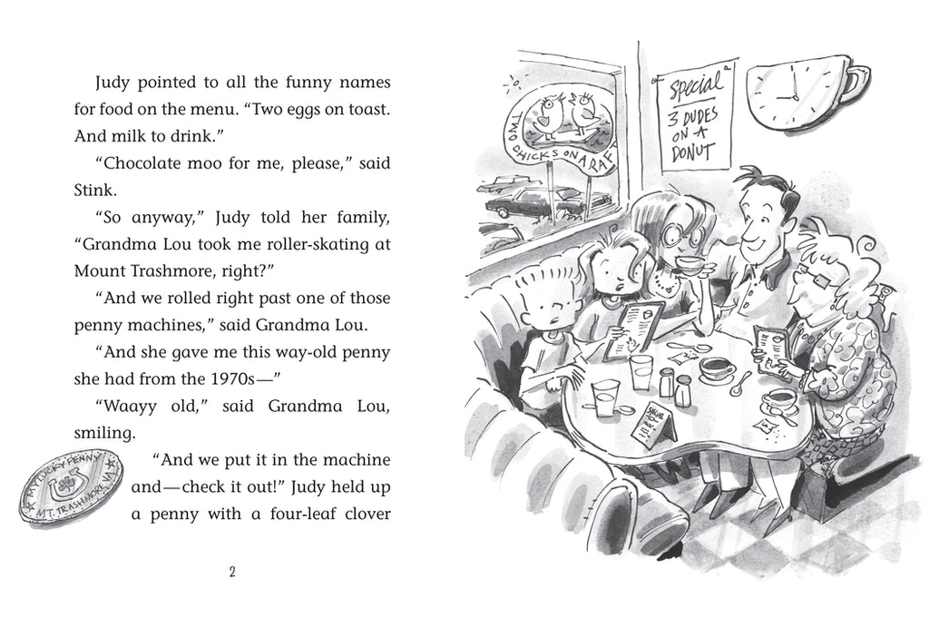 Ever since Grandma Lou gave her that lucky penny, Judy can't stop winning – at bowling, spelling, the unbeatable Prize Claw, everything! For sure and absolute positive, she'll ride that wave of good fortune all the way to Washington DC. That is, until her lucky penny has an UNlucky accident. Has Judy's luck gone down the toilet for good?