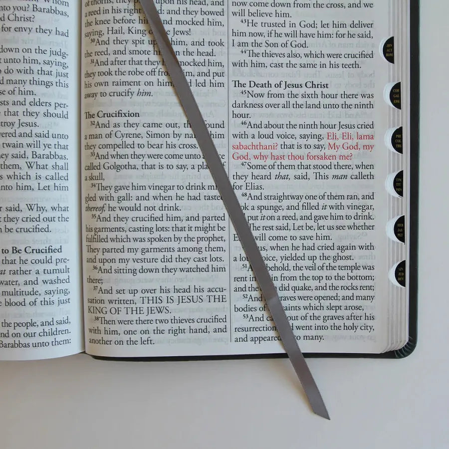 A handsome gray ribbon marker and thumb-indexing tabs make navigation effortless. Designed with convenience in mind, the flex cover opens completely flat without damaging the spine.