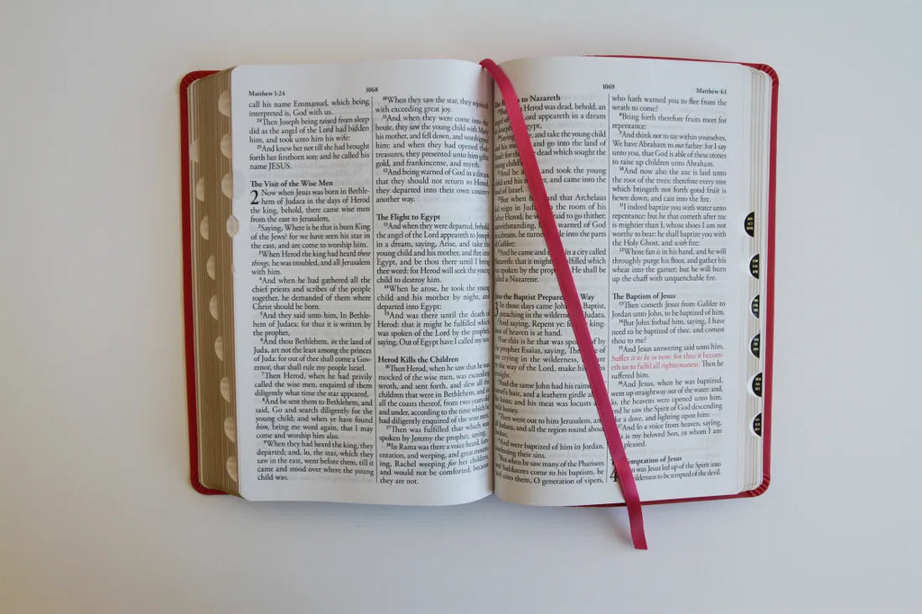 Thumb Index Tabs – Quickly flip to specific books of the Bible with tabbed navigation.
