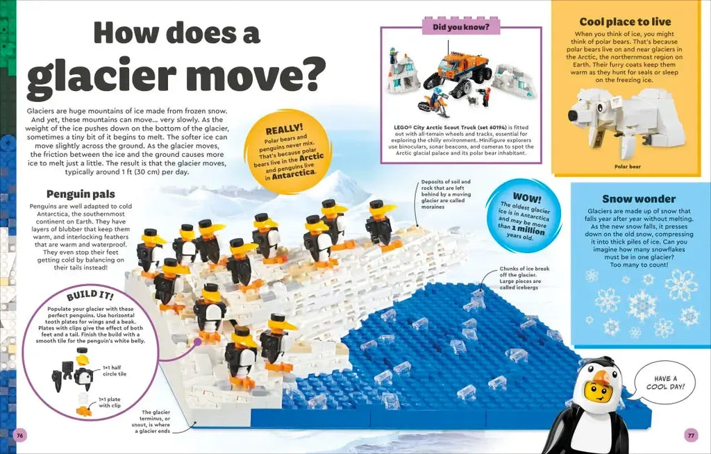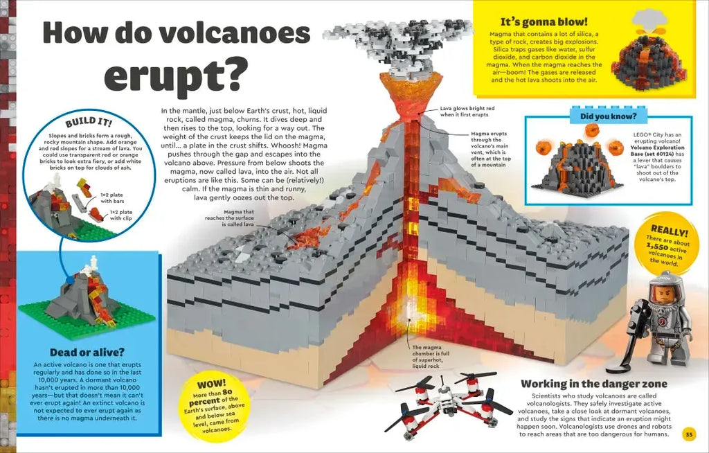 There is so much to see on planet Earth. From the rainforest canopy to the deepest depths of the Pacific Ocean, discover plants, animals, and the geological features that make up our planet. Travel the continents and look inside volcanoes, mountains, geysers, and much more. Visit the Amazon, check out the world’s tallest waterfall, and explore the most incredible places on the planet without leaving home. With more than 100 LEGO models to inspire you, what on Earth will you build?