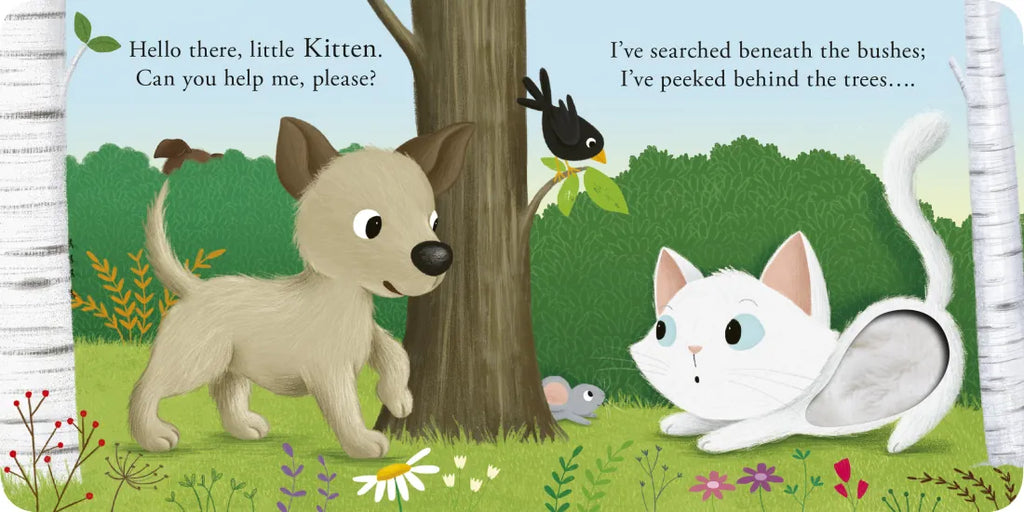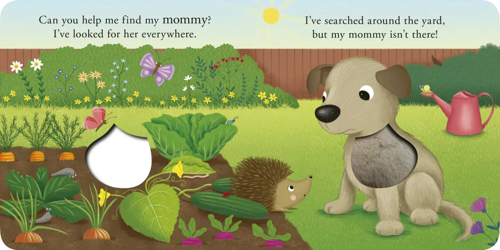 Puppy can't find his mommy! He asks Hedgehog if she's been in the vegetable garden; he wonders if Kitten has seen her; he asks Frog to help him look by the pond; he stops by Owl's tree to see if she's there. Where could Puppy's mommy be? Simple rhyming text, bold and colorful artwork, and touch-and-feel textures on each spread make this a fun, interactive book for toddlers.