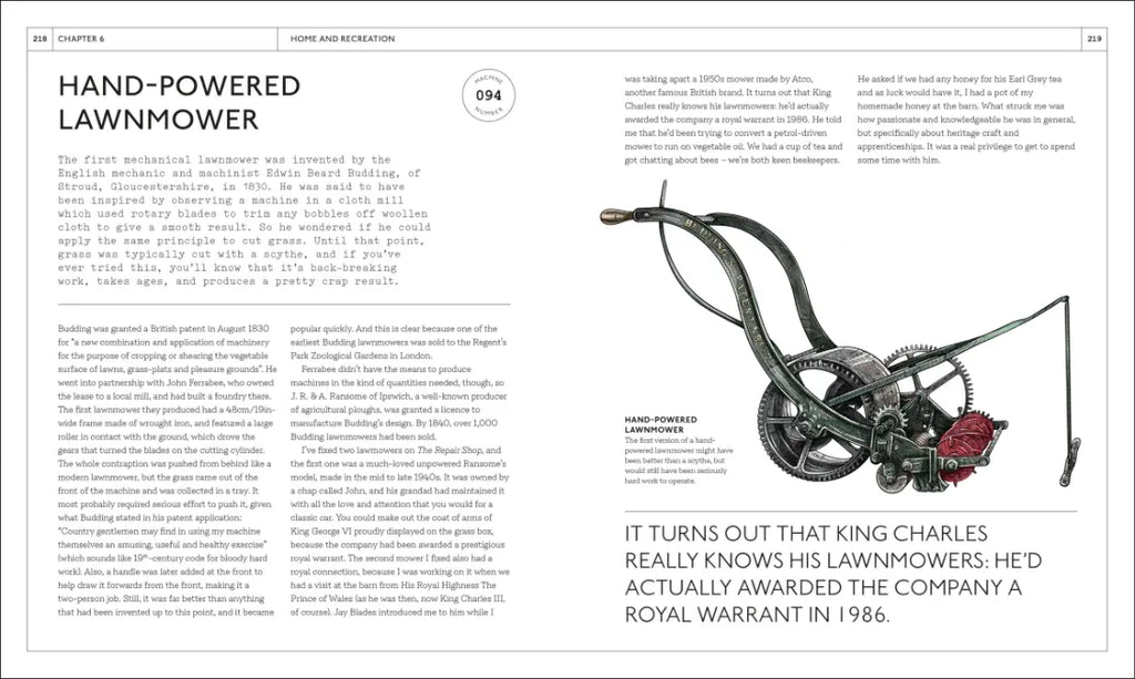 Filled with stunning illustrations and lively, engaging text, The Repair Shop's Dom Chinea guides readers through this celebration of the history and uses of 100 machines that have allowed artisans to create beautiful items for centuries.