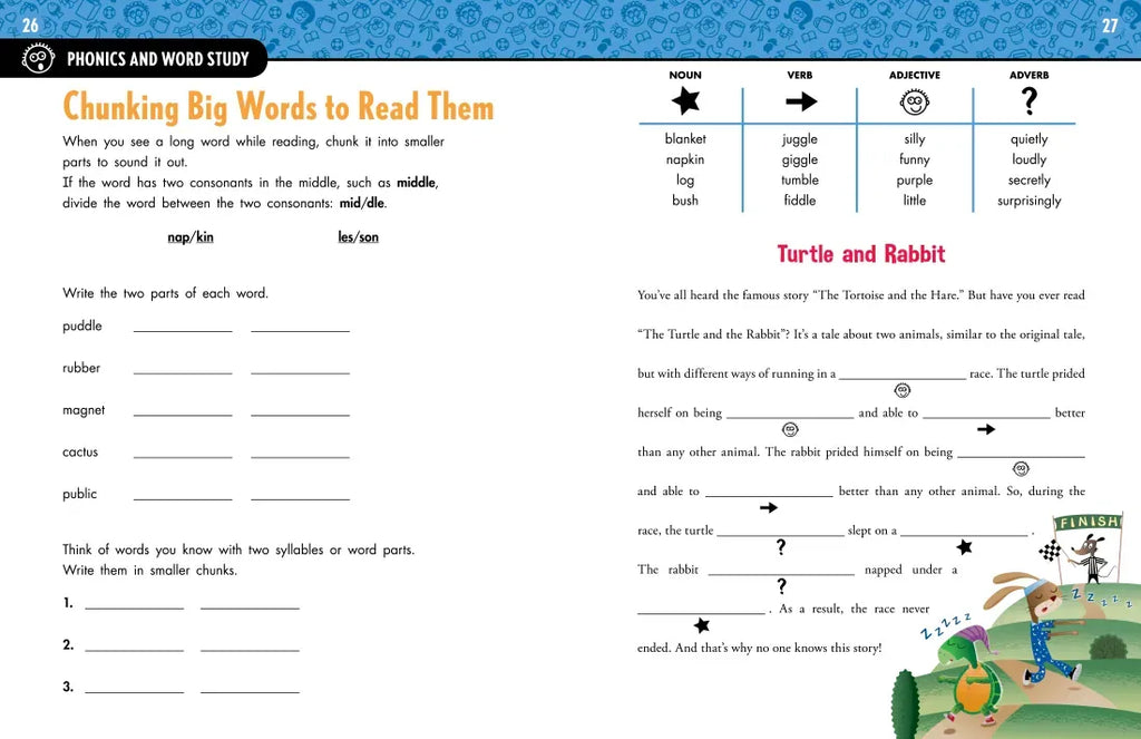 Reluctant learners will love the interactive activities within the workbook, and fans of Mad Libs will be delighted to play their favorite fill-in-the-blank word game at the end of each phonics, writing, and vocabulary lesson.