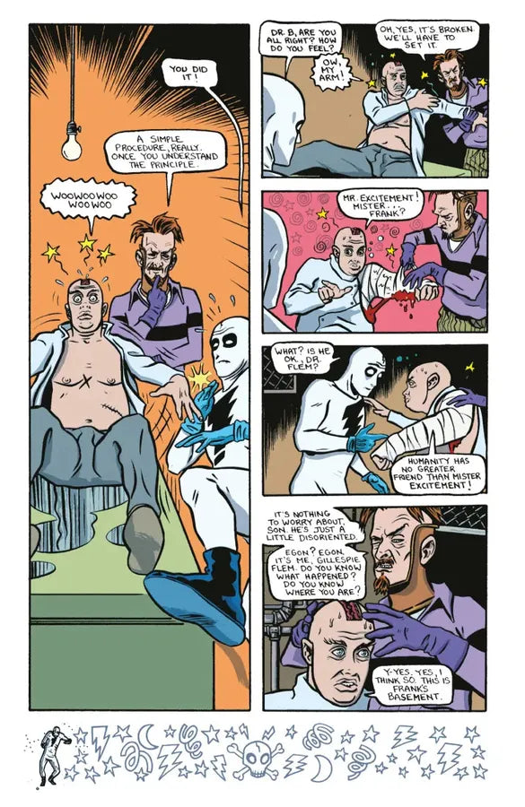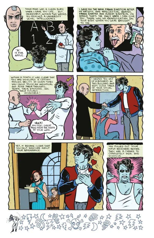 From Madman’s first appearance through his mysterious origins to his adventures throughout time, space, and pop-art absurdity; follow Frank Einstein’s superhero alter ego Madman as he adventures through Snap City and encounters many zany and timeless characters and villains in this true homage to superhero fiction, metaphysical philosophy, 1950s science fiction films, rock and roll pop music, and much more in this true humorous and heartfelt comic book classic!