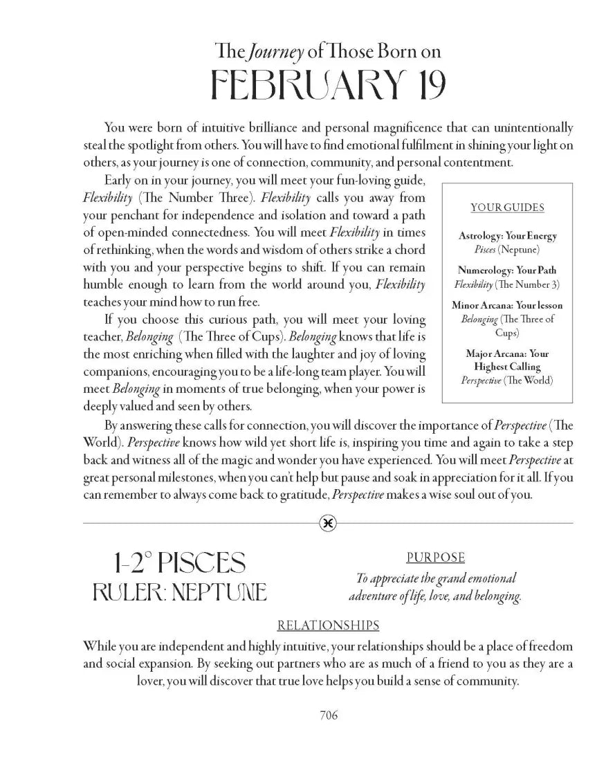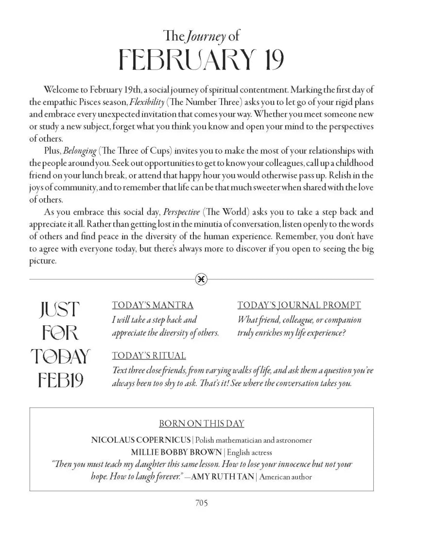 For each day of the year, you’ll discover guidance for the day’s particular journey based on the astrology, tarot, and numerology, along with a mantra, a ritual, and a journaling prompt, so you can home in on the lessons and wisdom that come from that particular moment in time, whether it's Capricorn or Aries season. You’ll also find special information if it’s your birthday, so you can take the day’s celestial wisdom to heart when it comes to your personal journey, relationships, goals, and dreams.