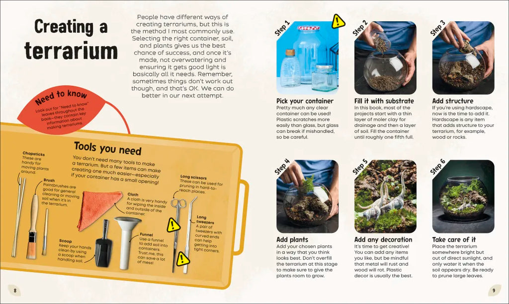 - Clear, practical guidance and step-by-step instructions on how to build a terrarium.