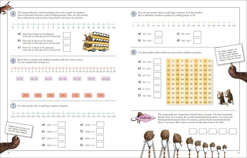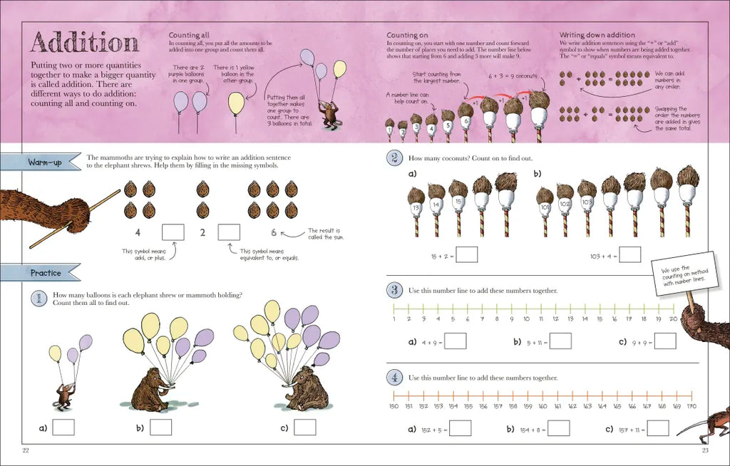 Macaulay's endearing mammoths and elephant shrews will take you on a joyful journey through the basics of numbers, counting, calculating, measuring, shapes, data, puzzles, codes, and more! Each math idea is explained, then reinforced with practice questions and fun activities. The answers are at the back, so you can check you're getting things right.