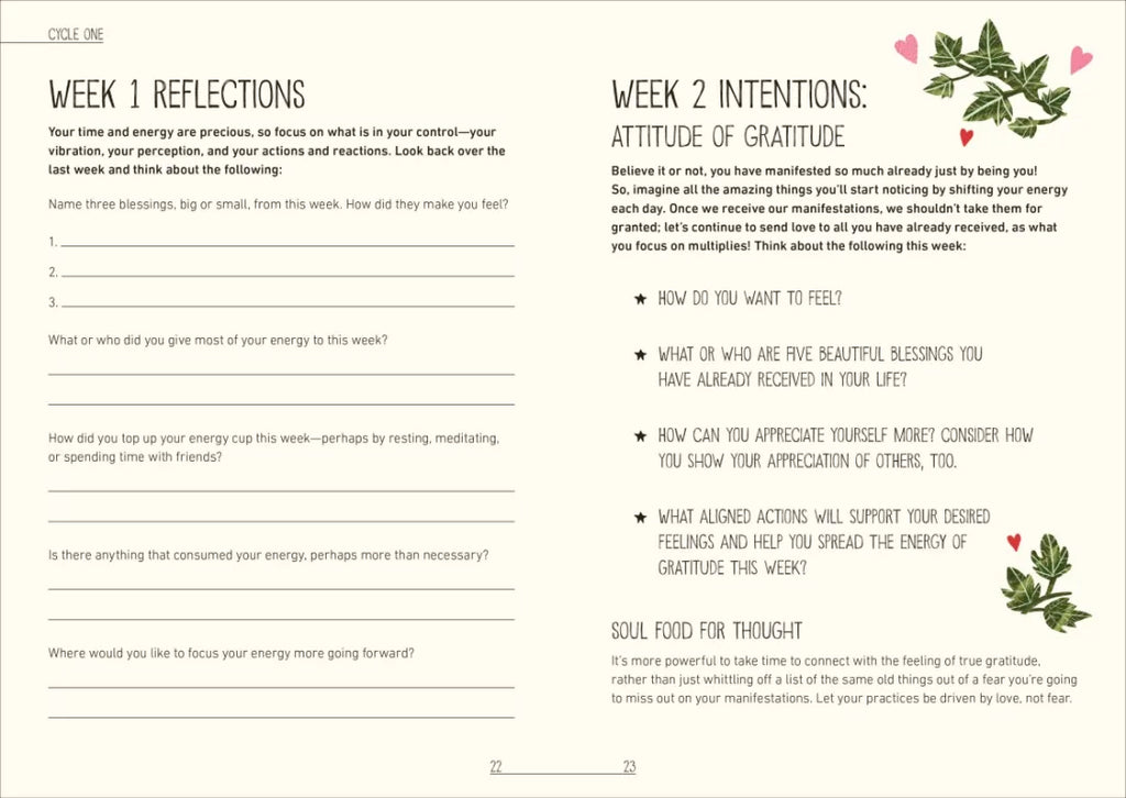 Manifesting has many positive mental health benefits, and the journal is designed to promote happiness through