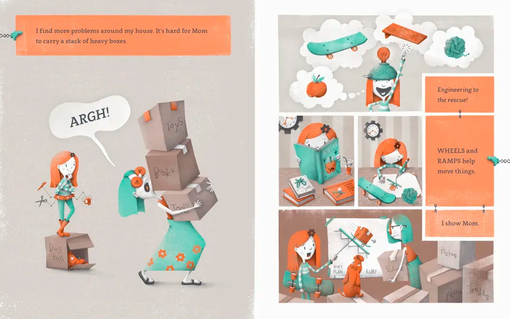 Featuring dynamic illustrations and a fun fold-out spread, this is a book that’s sure to inspire budding engineers while celebrating creative out-of-the-box thinking.