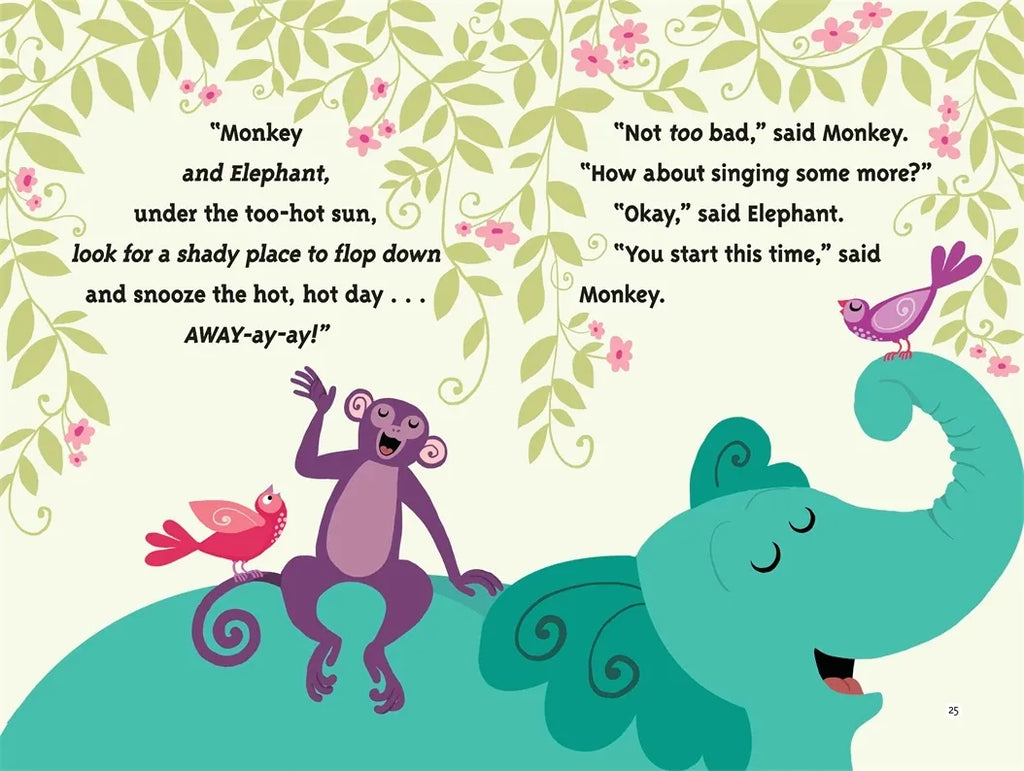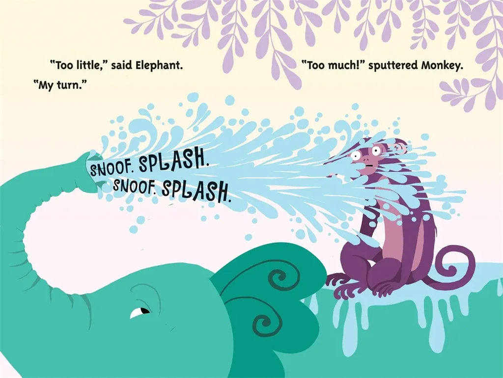 Monkey may scamper and Elephant galump, but they're the best of buddies as they search for shade. That is, when they're not bickering about how to get there!
