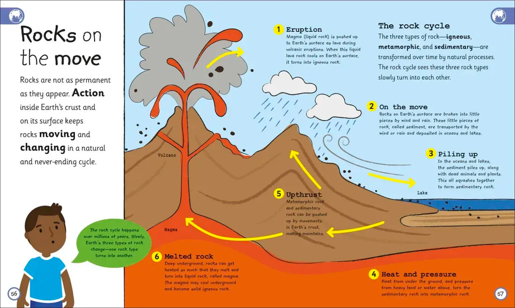 Full of fun facts, colourful illustrations, and games that will keep the kids entertained time again, this children’s encyclopedia is filled with age-appropriate knowledge on a range of topics from Earth’s inner core to the thinnest air at the edge of the atmosphere, get ready for a round-the-world adventure! Dig down and learn exactly what is under our feet. Investigate the workings of earthquakes and volcanoes. Learn howmountains are made and how rivers form. Find out about wind, rain, and extreme weather on Earth’s surface. Explore Earth’s habitats, and meet the plants and animals that call them home. Finally, find out about how our planet is under threat, and what you can do to protect it.