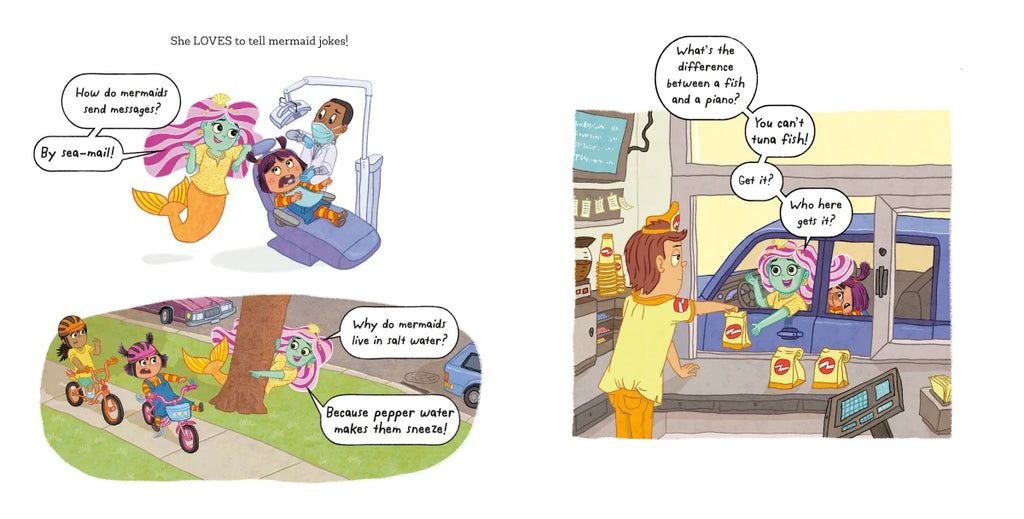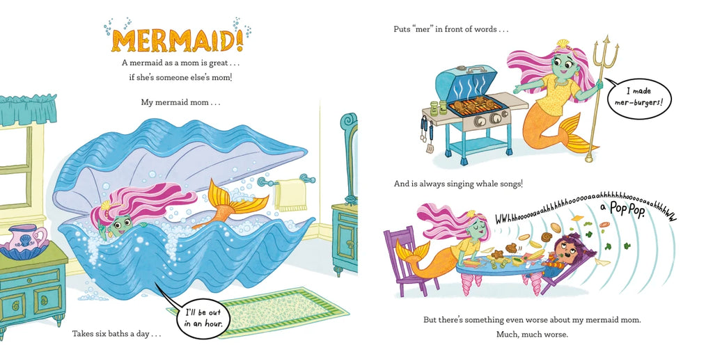 Mermaid Mom sings whale songs, never gets out of the bath, and tells really corny mom jokes ("How do mermaids send messages? By sea-mail!"). But when her daughter tags along with her to an underwater gig as a kids' party clown, she learns how funny and how special her mer-mom really is.