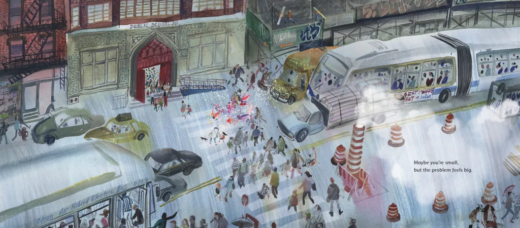 So begins a young girl’s journey to solve a problem she notices one rainy day while walking to school. In that moment, the small spark inside her grows and then connects her to others who are inspired to make a change and help the world become a better place.