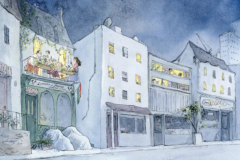 In a beautifully detailed wordless picture book, a tumbledown building becomes home sweet home for a found family.