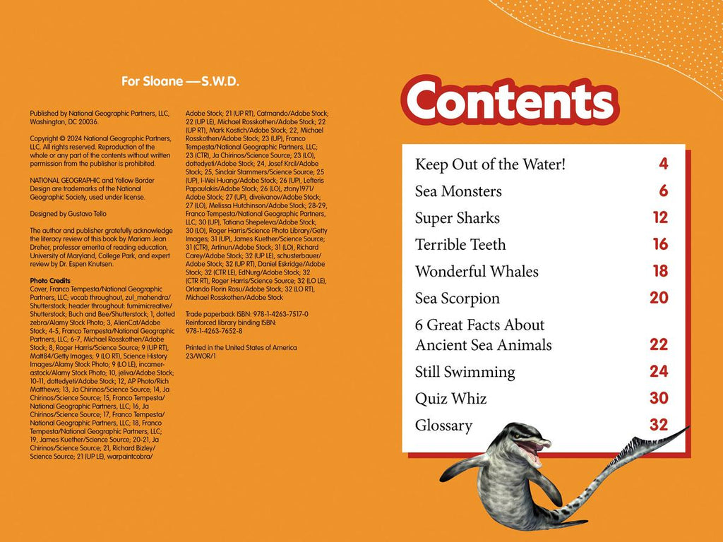 Teeth, tails, and scales—oh my! Newly independent readers will be transported back to a time when bugs were big and monsters ruled the deep. Each page of this dazzling Level 2 reader is packed with jaw-dropping facts on the fiercest predators of the ancient oceans. Learn about Megalodon, the largest shark ever to have lived; Jaekelopterus, a human-size scorpion; Helicoprion, a fish whose teeth were in the shape of a circular saw; and more!