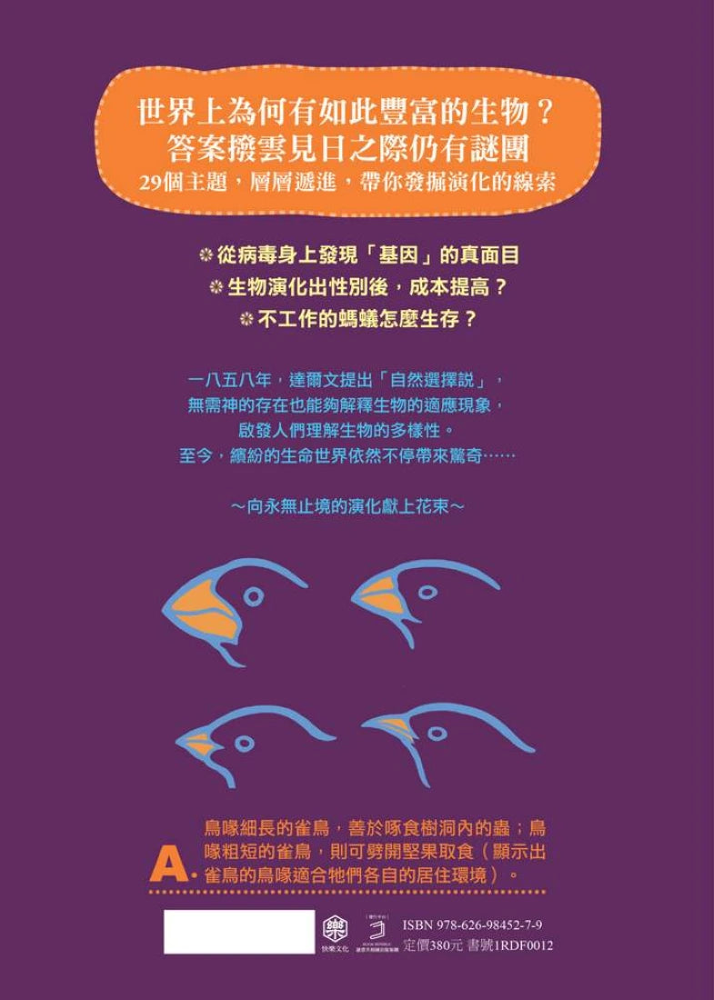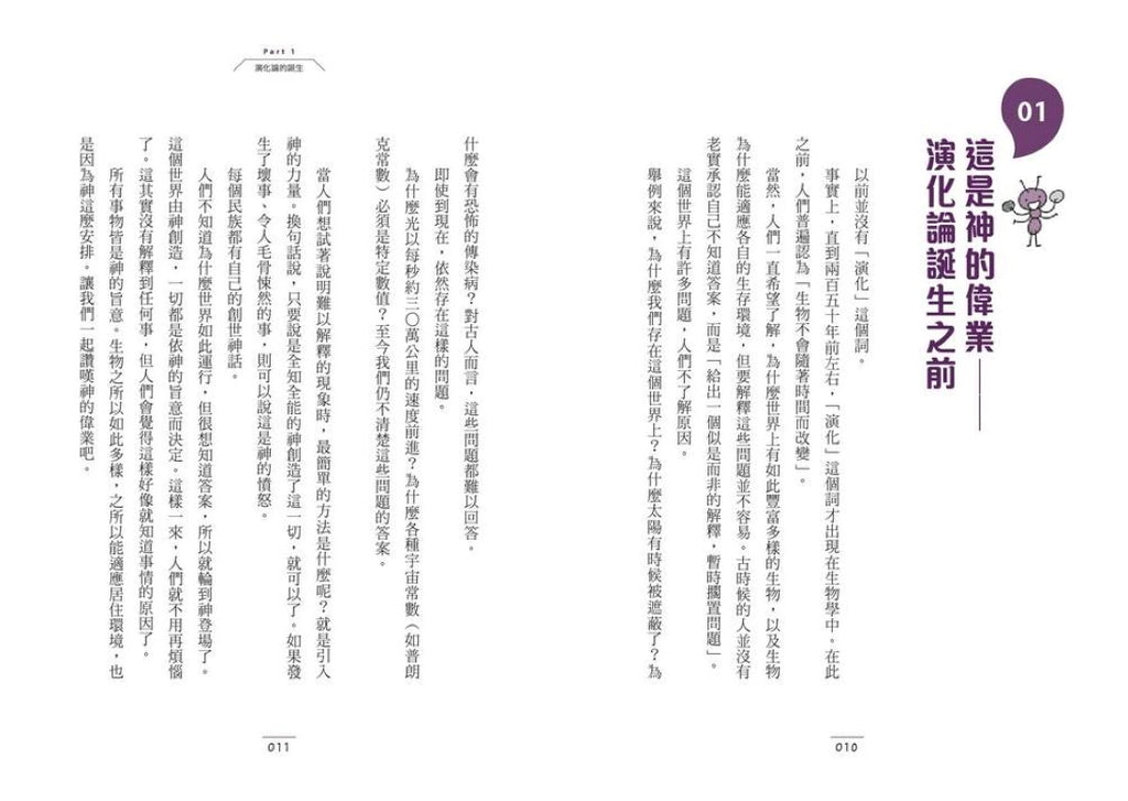 書本舉出多種生物為例,用科學觀點說明生物「為何」、「如何」發展出這些奇特生態,並闡述演化論的歷史以及未來的發展。一起踏上演化論的探險之旅吧!