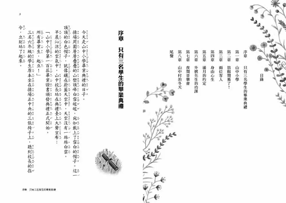 擁有百年歷史的「山中小學」迎來最後一批畢業生──美奈、兔兔子和今太,他們都是化身為人類的動物。畢業典禮三個月後,他們將廢校的小學,變成一家旅館。十二間教室以十二種色鉛筆為主題顏色;一年一班變成了餐廳;二、三樓成為客房;原本的游泳池變成了露天浴……