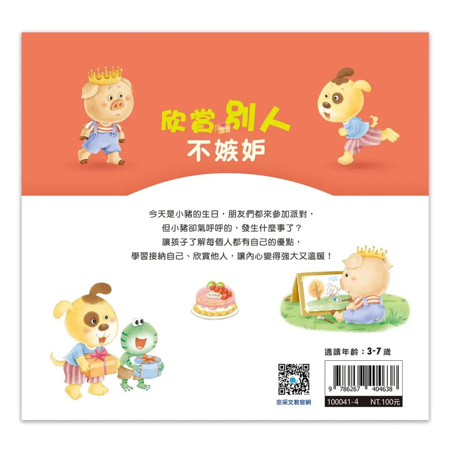 本系列透過6個生動有趣的繪本故事,描述孩子在成長過程中會出現的一些問題,如害怕、嫉妒、害羞、驕傲、衝動等,幫助孩子在閱讀中發展出正向、穩定的情緒反應。