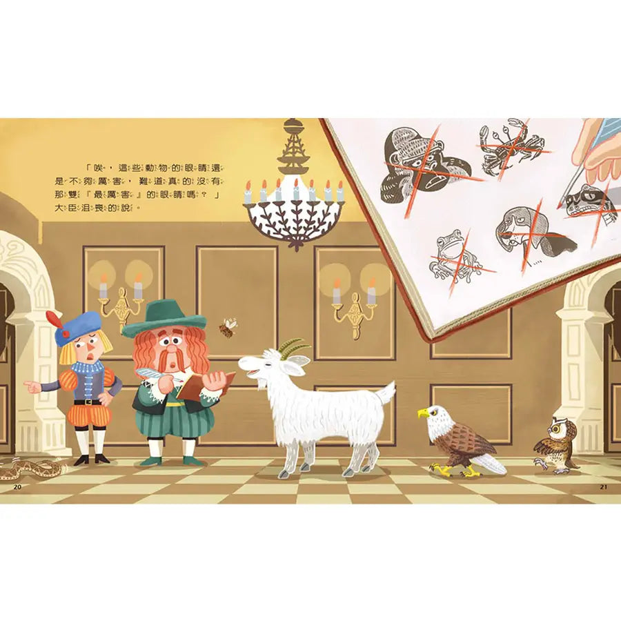 國王艾絲的皇冠不翼而飛,他召集動物們尋求幫助,希望找到擁有最強眼力的動物來解決這場危機。動物們紛紛展現自己的視力絕技,每一雙眼睛都有特別的功能,那麼,到底是誰能找到皇冠呢?