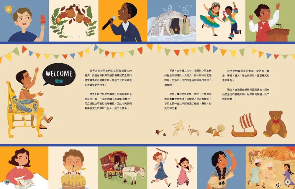 看看各個時間年代、地理背景、不同文化的孩子在家裡、學校、玩耍中如何生活。