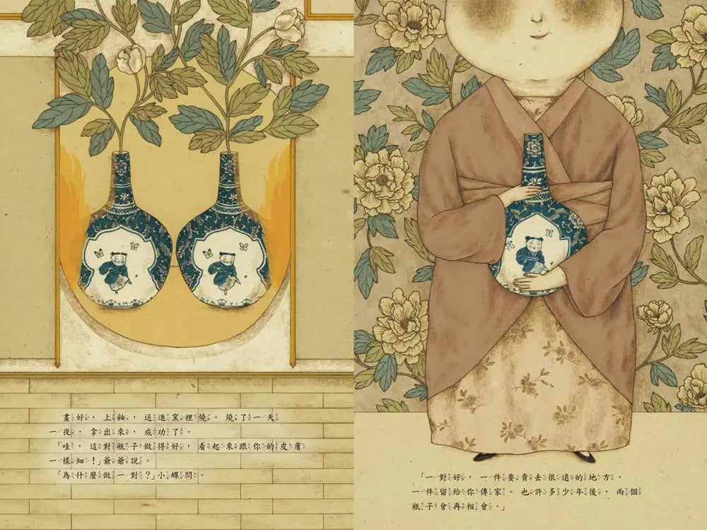 小蝶的爺爺,是位做瓷器的大師。有一天,爺爺做了一對瓷瓶,指著空白問:「這麼美的地方,要加點什麼好呢?」小蝶畫上幾隻蝴蝶;爺爺在蝴蝶下方,畫了踢毽子的女孩。