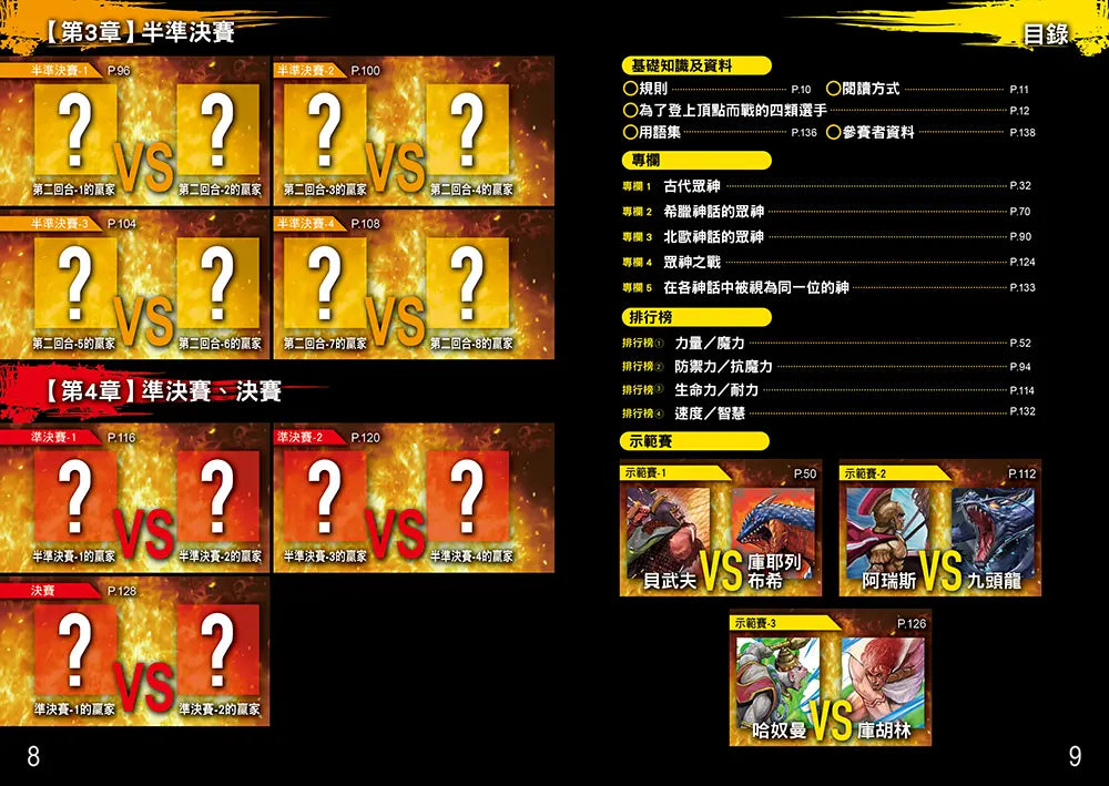 除了24位參賽者緊張刺激的戰鬥場面,書中還根據力量、魔力、防禦力、抗魔力、生命力、耐力、速度和智慧,製作出各項「排行榜」,讓選手的各項能力更加一目了然。