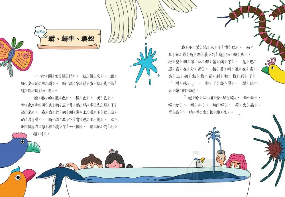 繪者韓承武的插畫風格活潑,大量精美插圖搭配適中文字量,設計有漫畫頁和互動遊戲,降低了從繪本過渡到文字書的門檻,提升閱讀吸引力。