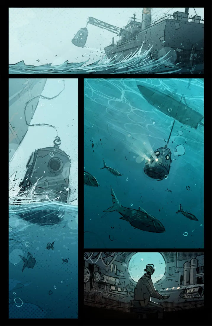 A thrilling graphic novel adventure unfolds beneath the waves, where ancient grudges and modern conflicts collide.