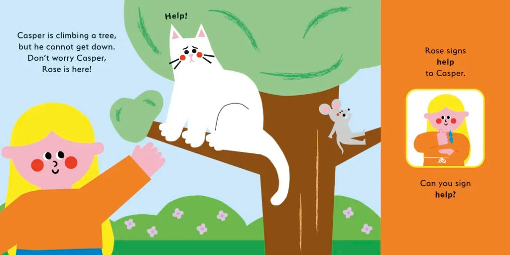 Join Rose and Kitten Casper in this special story for 0-5 year olds and learn to sign along the way. Every page shows Baby Rose introducing a new, essential sign to her Kitten Casper, with a simple step-by-step demonstration for young readers to follow and join in too.