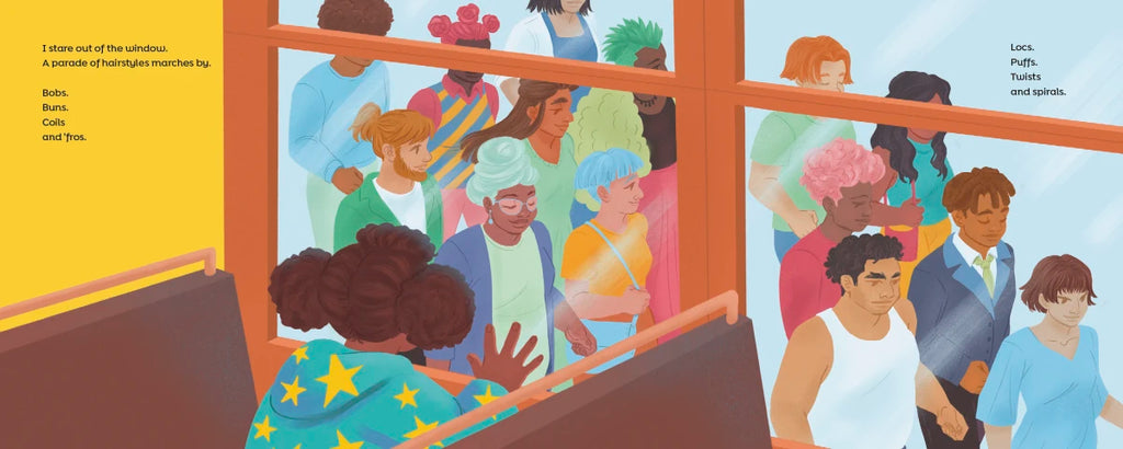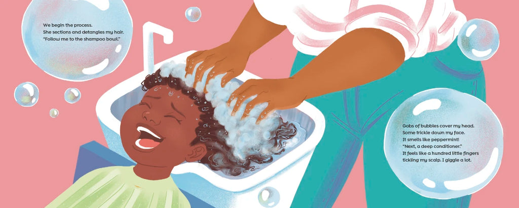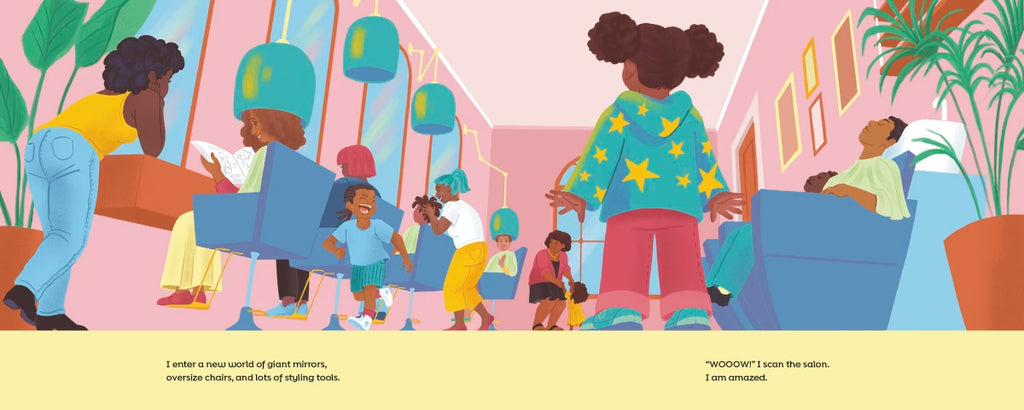 A picture book that celebrates the community built at the hair salon and the dynamic variety of Black hairstyles!