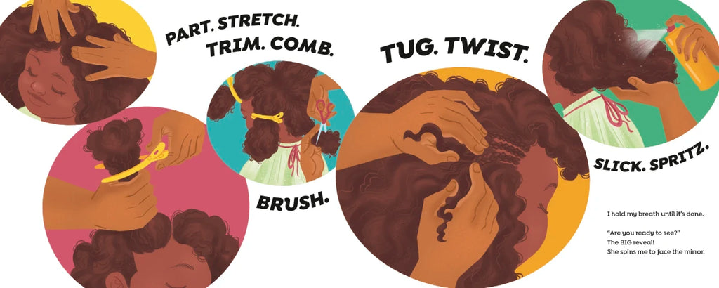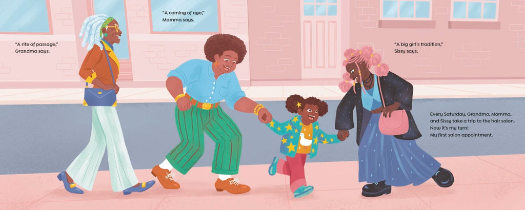 When the options seem overwhelming, the young girl decides to search for what feels right today, and that there’s always a future salon visit to try something new. While admiring the three loving women who have guided her through this big day, she finally sees it…her own kind of beautiful!