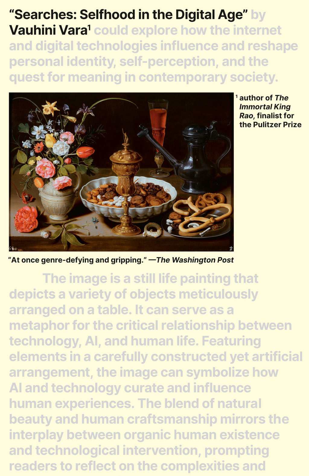 The experience, revealing both the power and the danger of corporate-owned technologies, forced Vara to interrogate how these technologies have influenced her understanding of herself and the world around her—from discovering online chat rooms as a preteen to using social media as The Wall Street Journal’s first Facebook reporter to asking ChatGPT for writing advice—while compelling her to add to the trove of human-created material exploited for corporate financial gain. Interspersed throughout this investigation are her own Google searches, Amazon reviews, and the other raw material of internet life—including the viral AI experiment that started it all. Searches illuminates how technological capitalism is both shaping and exploiting human existence while proposing that by harnessing the collective creativity that makes humans unique, we might imagine a freer, more empowered relationship with our machines and, ultimately, with one another.